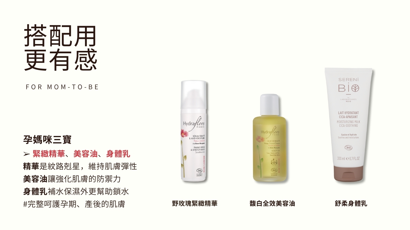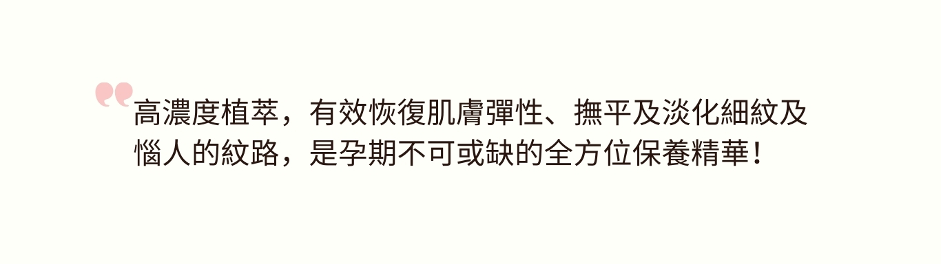 ✓ 孕期產後可使用於腹部、臀部、腿臀、胸部、前胸等局部,提升肌膚彈力、淡化/撫平惱人紋路